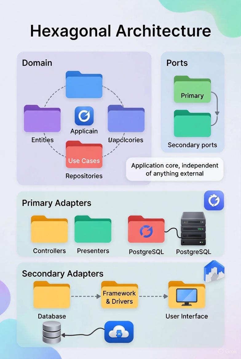 Adapters – These are the actual implementations that connect external systems to your ports.