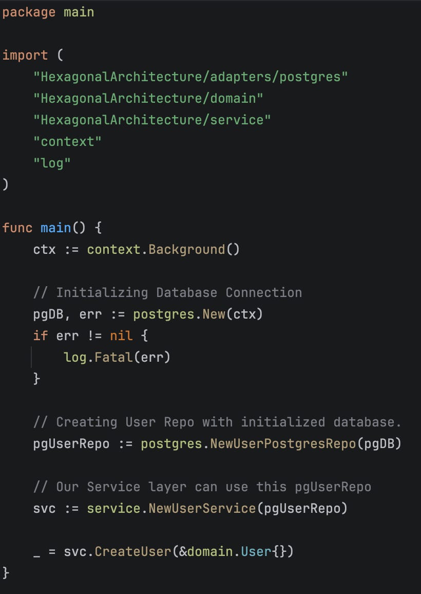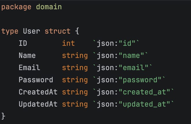 You can see that our User struct does not have external system code. It’s just the core of our application.